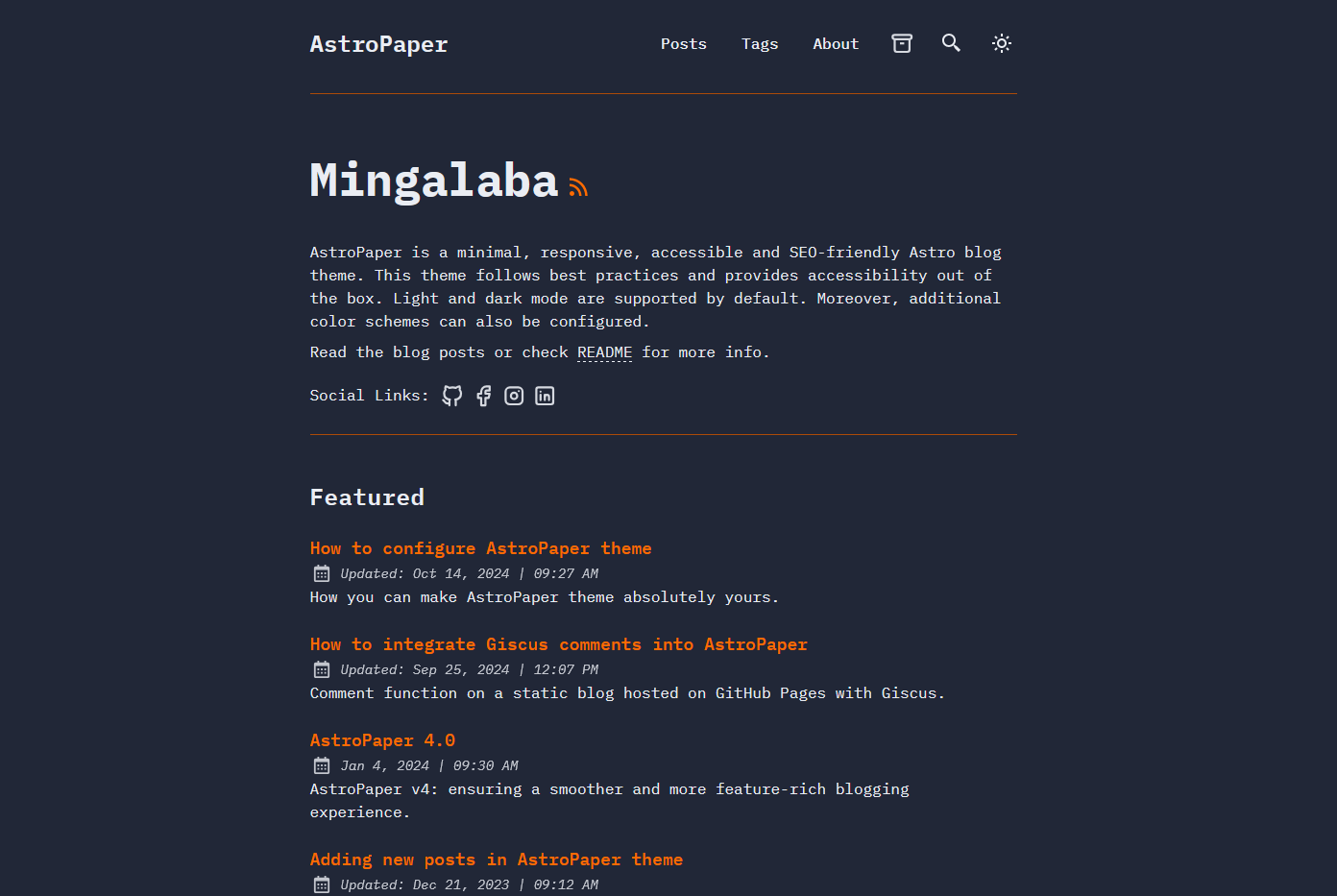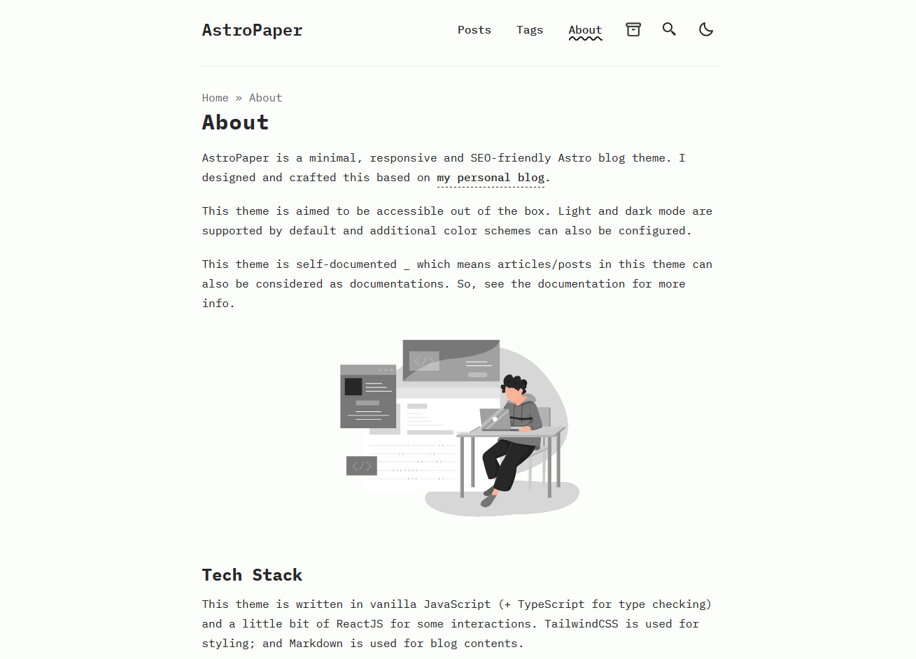 AstroPaper is a minimal, responsive, accessible and SEO-friendly Astro blog theme. This theme is designed and crafted based on my personal blog.