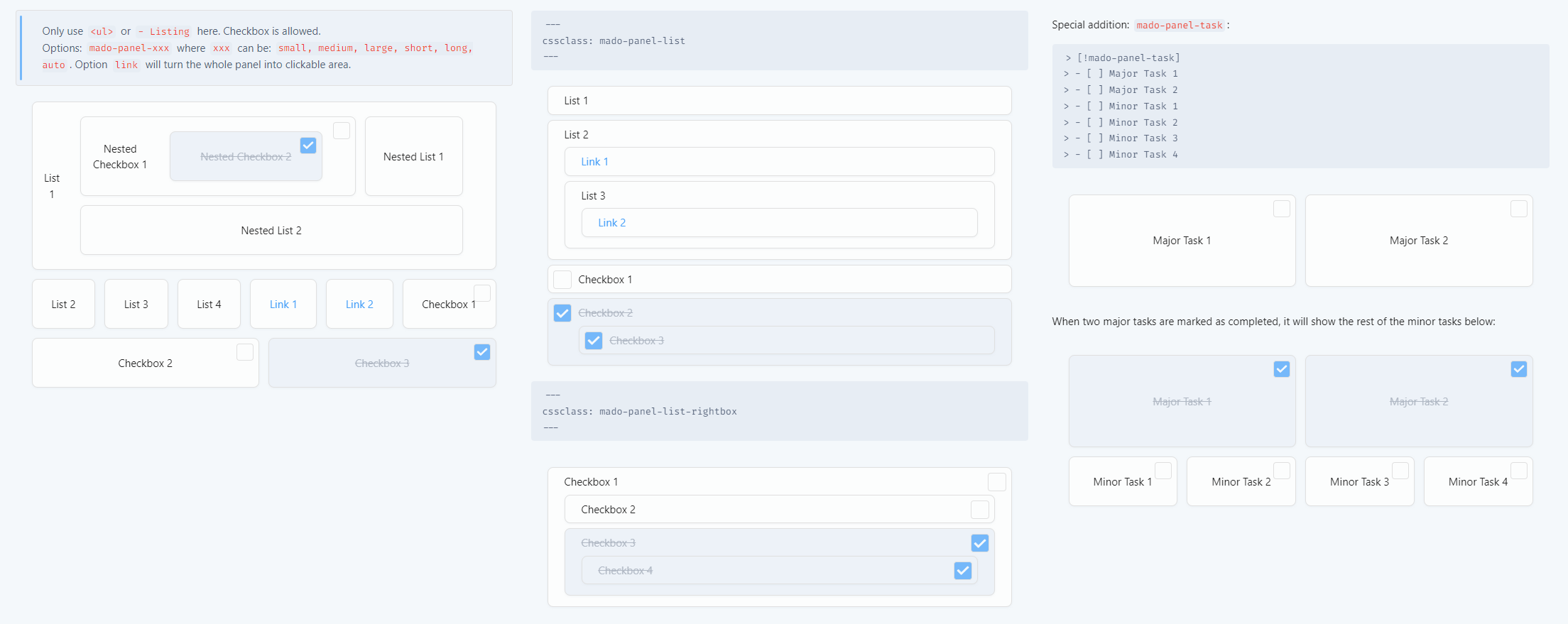 cssclass: mado-panelcssclass: mado-panel (transform all lists into panels)